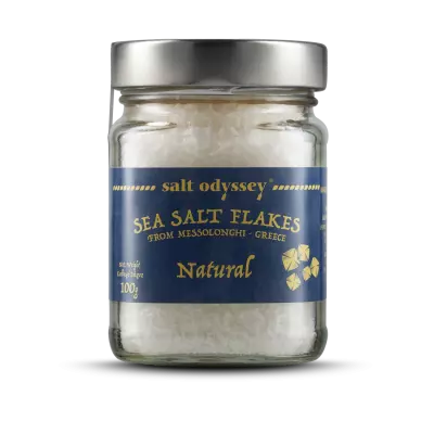 Salt Odyssey Sea Salt Flakes from Messolonghi in Glass Jar 100g – Additive-Free & 100% Natural