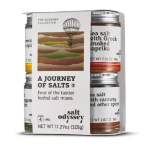 Salt Odyssey Greek Sea Salt Gift Set 4×80g – Prime Sea Salt, Smoked Paprika, Smoked Salt & Fleur de Sel | Organic, Additive-Free, Gourmet Gift Idea