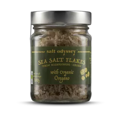 100% φυσικό αλάτι από τις αλυκές Μεσολογγίου Εμπλουτισμένο με αποξηραμένη ελληνική ρίγανη Πυραμιδοειδείς νιφάδες – φυσικά σχηματισμένες Τραγανή υφή, ελαφρώς βοτανική γεύση Χωρίς χημικά πρόσθετα ή τεχνηνά αρώματα Καθαρό βάρος: 100g Συσκευασία: Γυάλινο βαζάκι με μεταλλικό καπάκι Ιδανικό Για: Ψητό ή μαγειρευτό κρέας Πατάτες, σαλάτες, φέτα Ελαιόλαδο με μυρωδικά Πιάτα που απαιτούν έξτρα μεσογειακή γεύση 🏆 Βραβεύσεις: 🥉 OLYMP Awards 2018 – Χάλκινο ⭐⭐ Great Taste Awards 2018 – 2 Αστέρια Παγκόσμια αναγνώριση για τη γευστική του ισορροπία και τη φυσική του καθαρότητα. 🎁 Premium Επιλογή για Δώρο Η κομψή γυάλινη συσκευασία το καθιστά ιδανικό για καλάθια delicatessen, εταιρικά δώρα, αλλά και για όσους επιλέγουν υψηλής ποιότητας υλικά στην κουζίνα τους