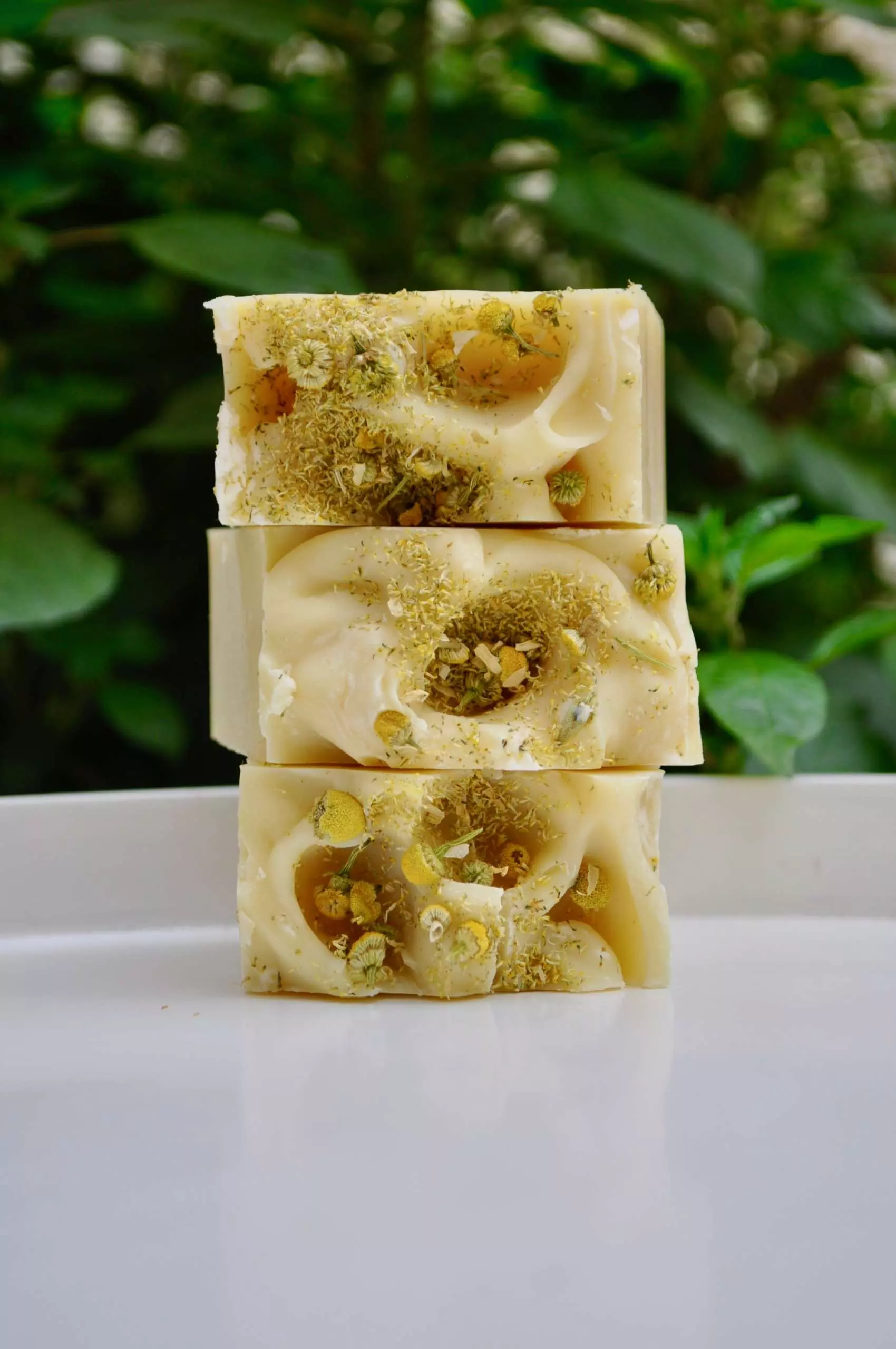 🌿 Σαπούνι Χαμομήλι & Λεβάντα Ιδανικό για ευαίσθητο και ξηρό δέρμα, καθώς και για την ευαίσθητη περιοχή. Περιέχει χαμομήλι και λεβάντα, προσφέροντας καταπραϋντική και χαλαρωτική δράση. Κατάλληλο για όλους τους τύπους μαλλιών.